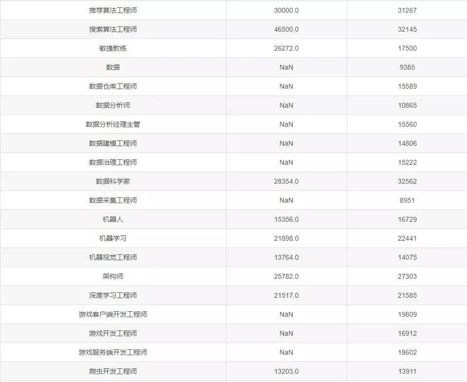 各岗位薪资一览